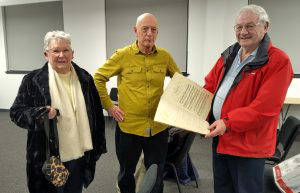 Stuart Eydmann and I had a most interesting visit to Dumfries to share our research into local fiddling with DGNHAS. We were particularly pleased to meet Willie & Helen McNairn, pictured here with Stuart. They’d brought a family copy of the tune book of 19c fiddler and tune maker James Porteous from Annandale. Helen is a descendant of the family! Just the kind of connections we love to discover.